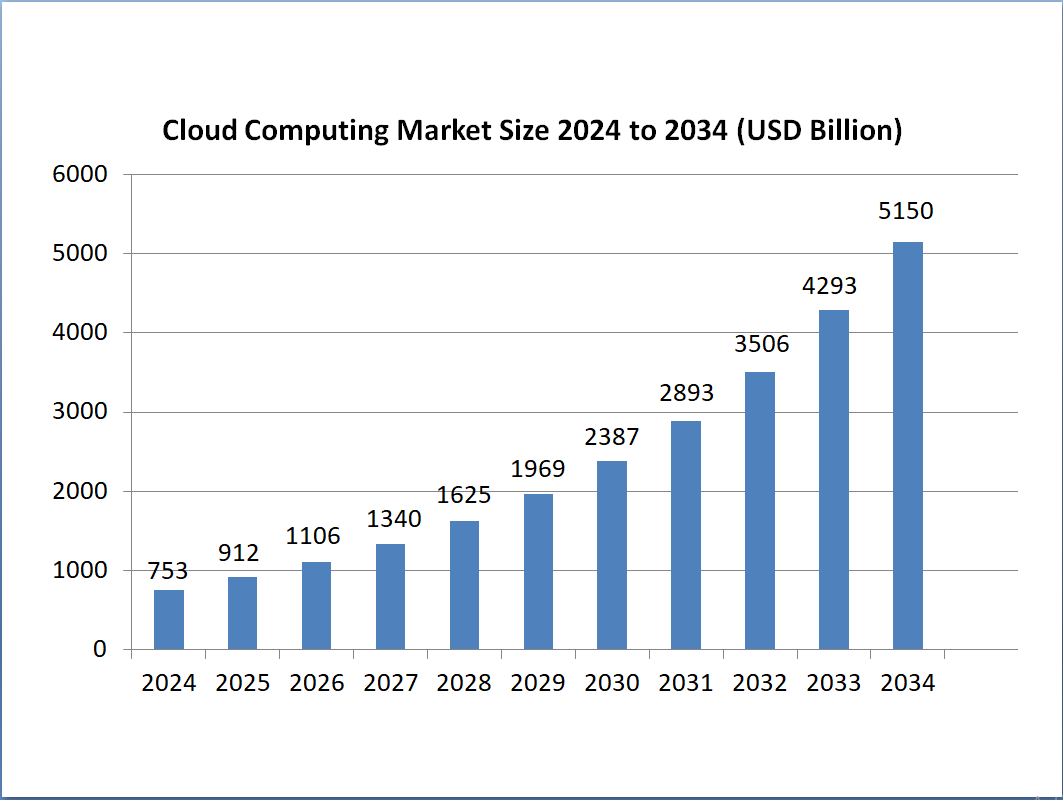 Companies that want to remain ahead of the competition, make their operations more flexible, and speed up the growth process needed for cloud native app development. The cloud computing market is also going to rise very fast. It reached around US$ 753.11 billion in 2024 and is anticipated to reach around US$ 5,150.92 billion by 2034, expanding at a CAGR of 21.20% from 2025 to 2034.